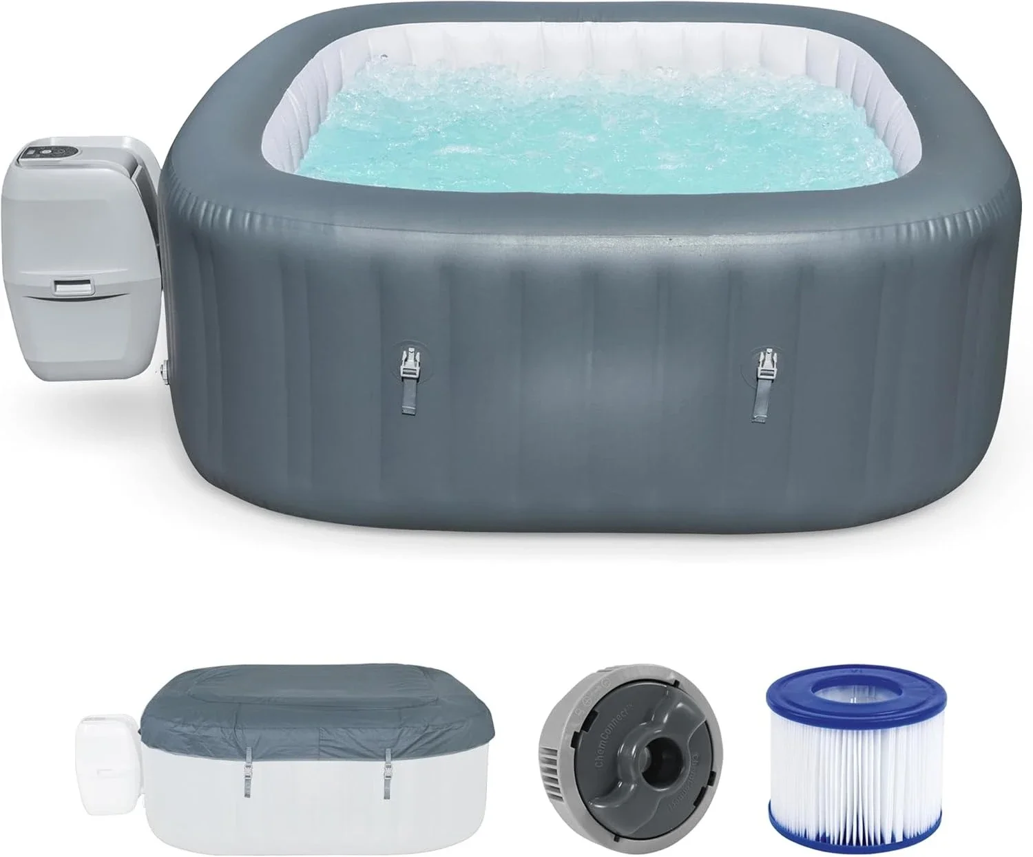 SaluSpa AirJet 4 to 6 Person Inflatable Hot Tub Square Portable Outdoor Spa with 114 Soothing AirJets and Insulated Cover, Gray