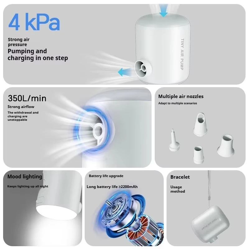 Electric Inflatable Pump Mini Air Cushion Portable Camping Pump Rapid Filling Mattress Swimming Pool Air Filling Blower Injector