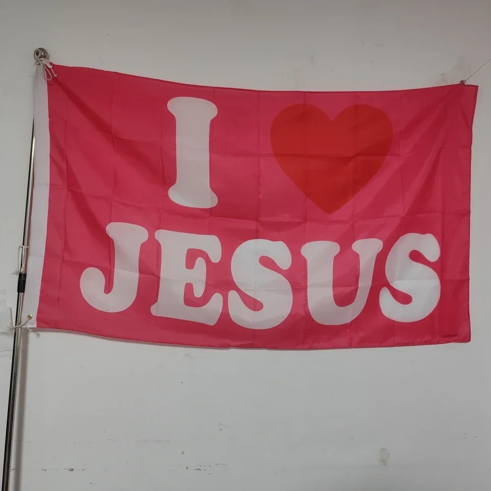 Pink I Love Jesus Flag 90x150cm Faith Christian Banner for Indoor Outdoor Decor Polyester Church Garden