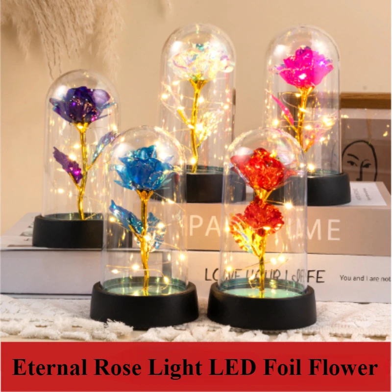 Valentines Day Gift for Girlfriend Eternal Rose LED Light Foil Flower In Glass Cover Mothers Day Wedding favors Bridesmaid Gift