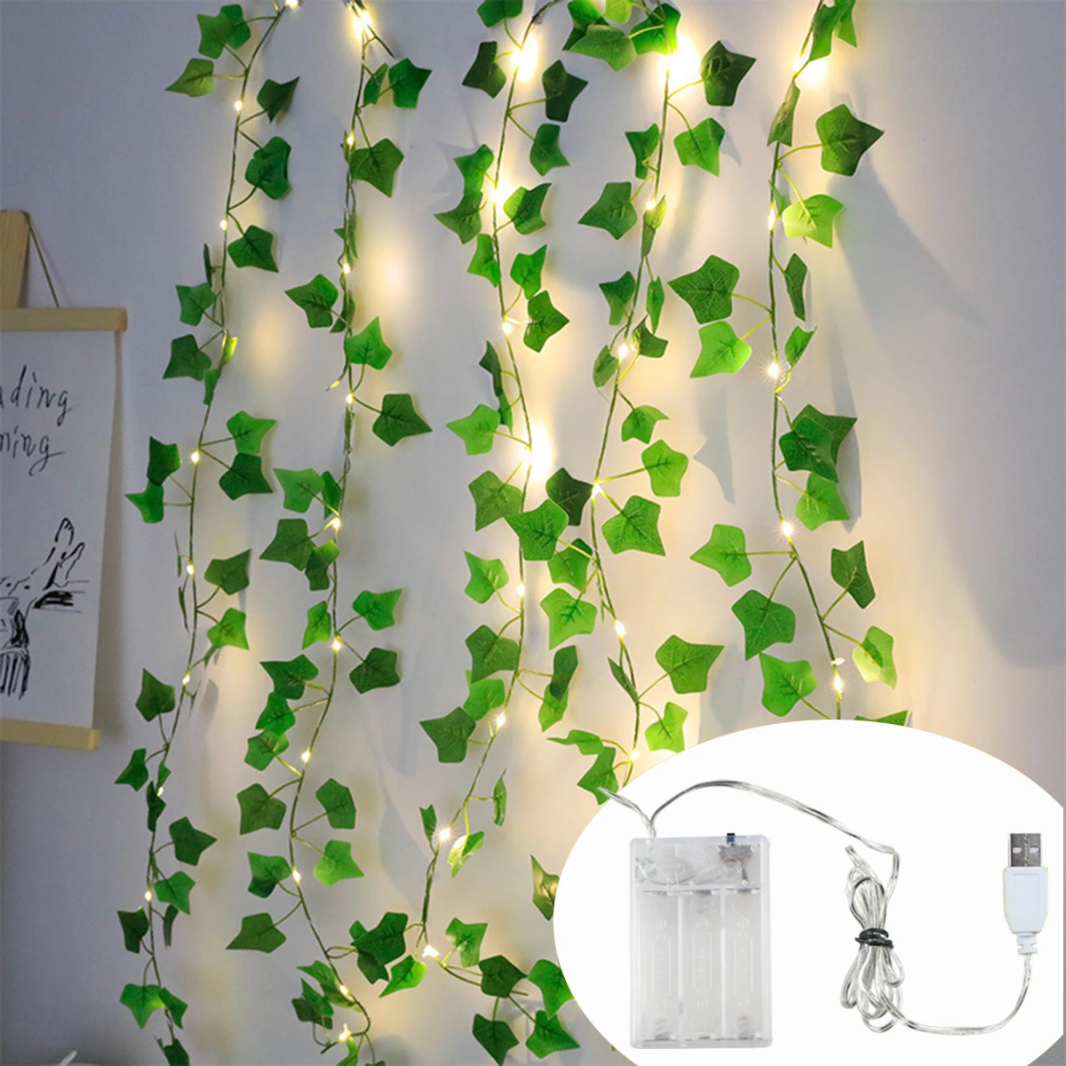 Flower Green Leaf String Lights USB And Battery Powered Ivy Vine Fairy Lights Garland For Party Christmas Courtyard Decoration