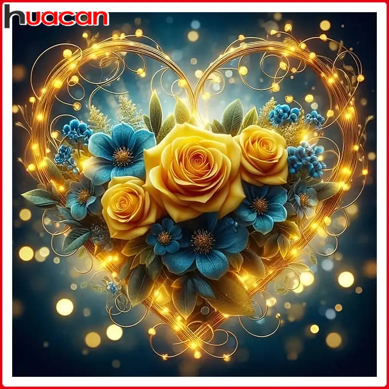 Huacan 5D Yellow Rose Love Diamond Painting Home Decoration Full Square Round Drill Embroidery New Collection 2025