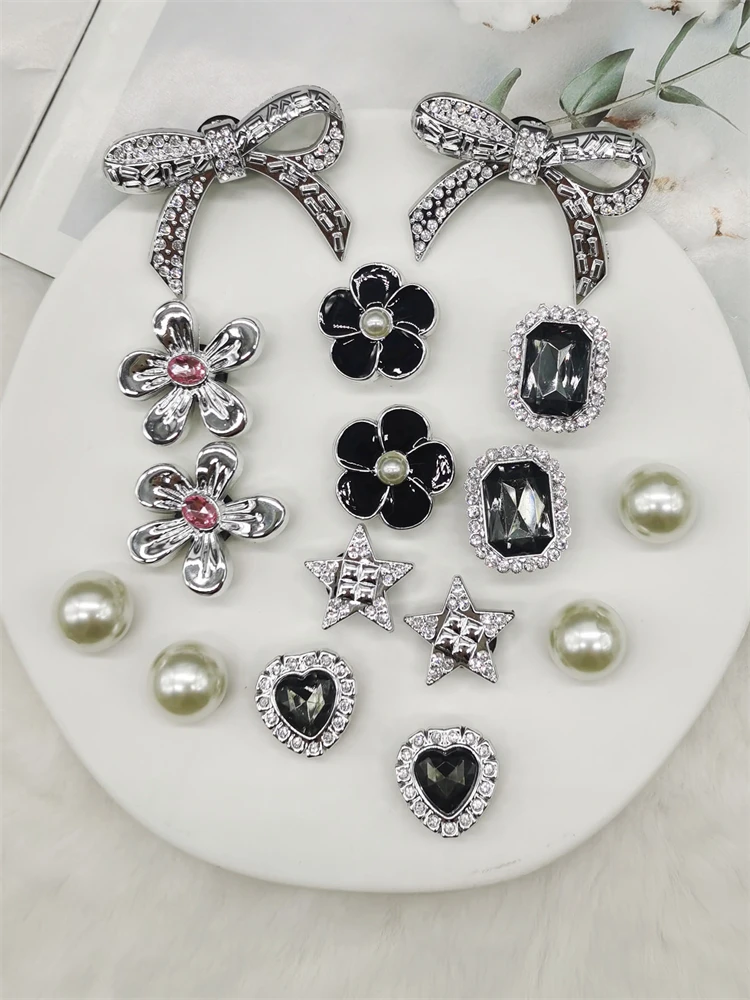16PCS ABS Resin Bowknot Shoe Charms Heart Shaped Shoes Decorations Artificial Faux Bead Shoe Accessories Flower Star Shoe Clips