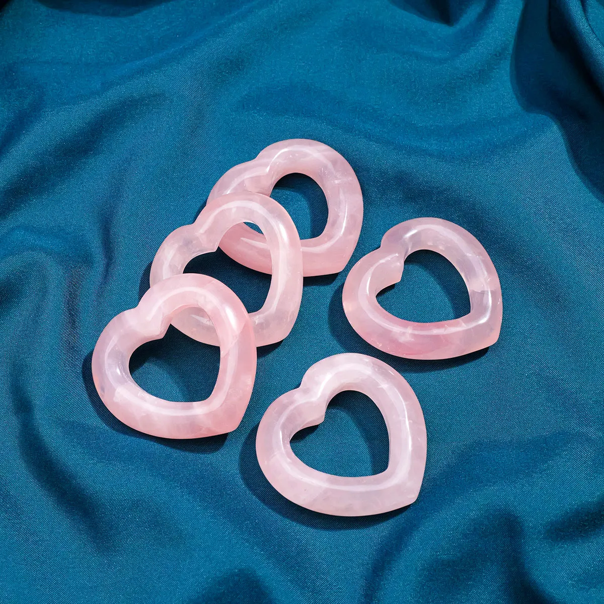 1pc Natural Crystal Rose Quartz Hollow Heart Carving Ornament Raw Stone Polished Heart-shaped Craftwork Ornament Home Decor