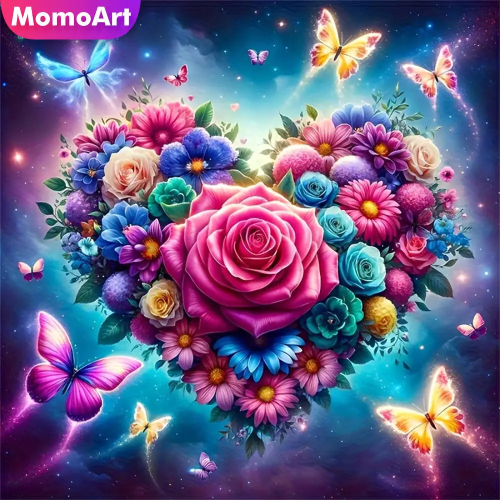 Momoart Rose Flower Diamond Embroidery Love Heart Mosaic DIY Picture Of Rhinestones Butterfly Painting Needlework Handmade Gift