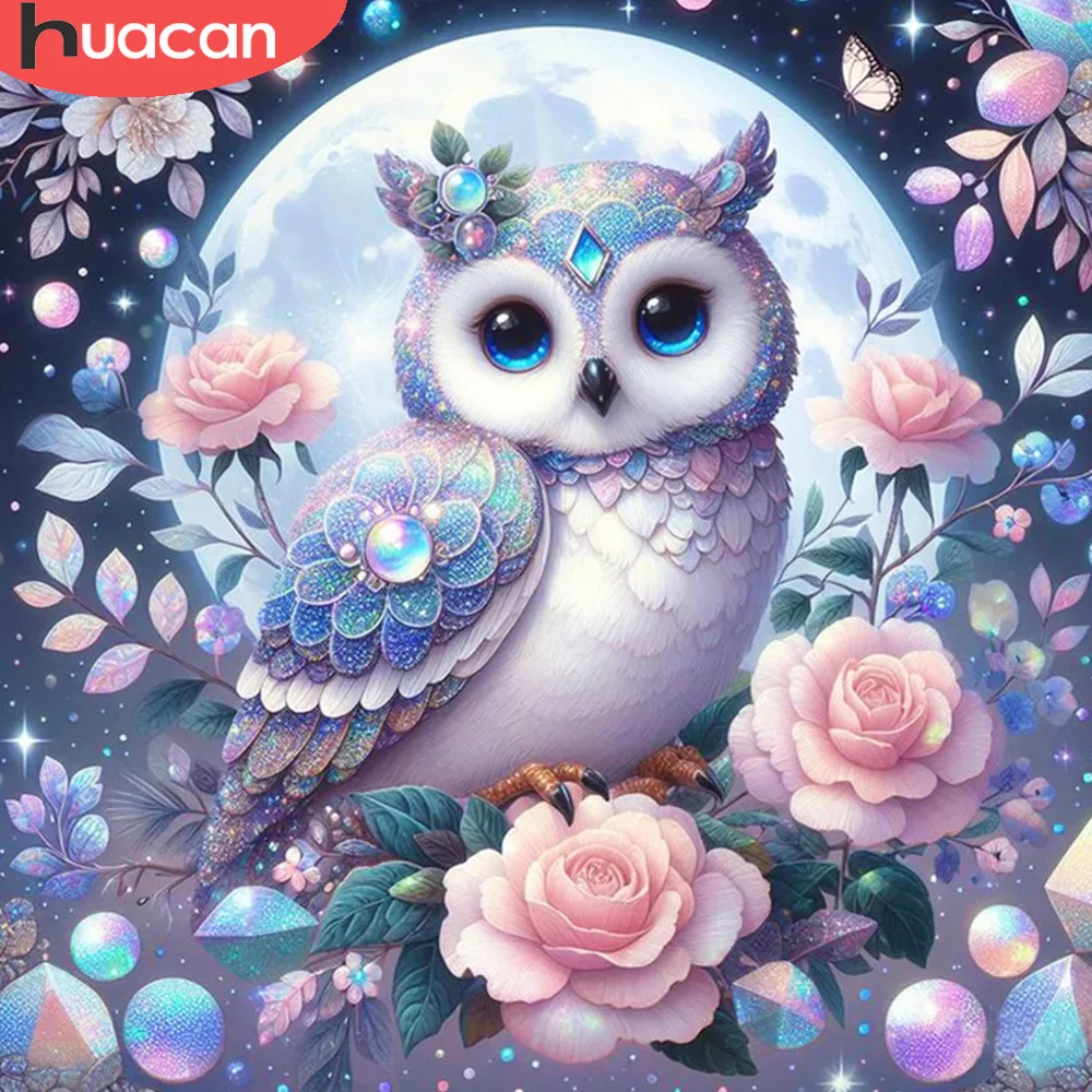 HUACAN Diamond Mosaic Animal Owl Full Square Round Drill Embroidery Flower New 2024 Decorative Paintings