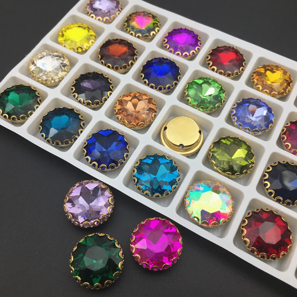 All size round glass Crystal Gold base lacy claw flower flat top shape Sew on rhinestone wedding dress bags shoes decoration diy