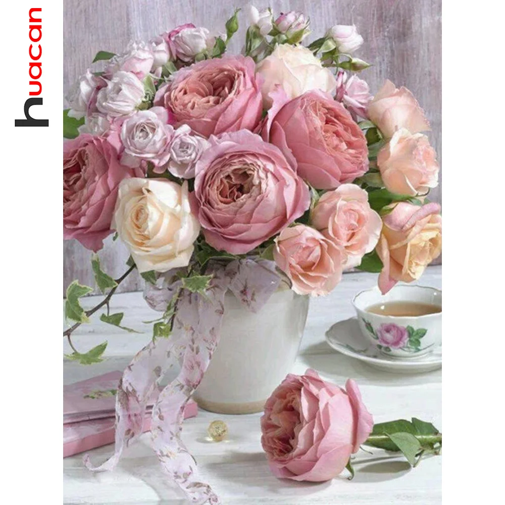Huacan New Arrivals Diamond Painting Flower Full Round Square Diamond Embroidery Rose Art Wall Decoration Craft Kit