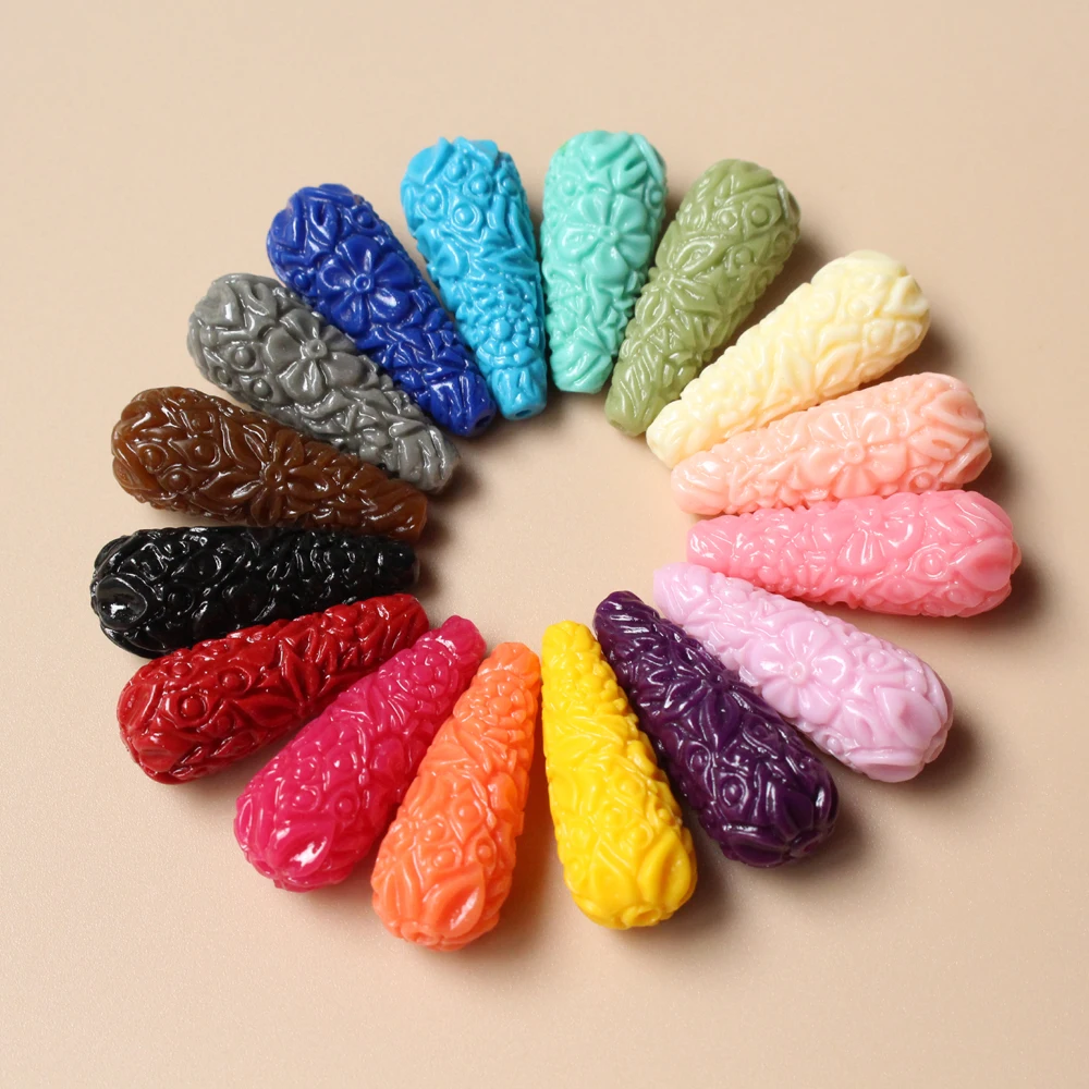 10mm×27mm S Artificial Coral beads Carved Flower Bead Tear Drop Shape Cabochon Beige Green Mix Colors for Jewelry Earring making