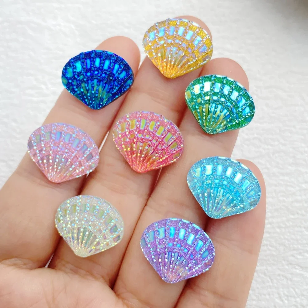 50pcs 14x17mm AB Resin Shiny Shell Flatback Flower Rhinestone Gems Scrapbook Home Figurine Decor Applique Crafts DIY