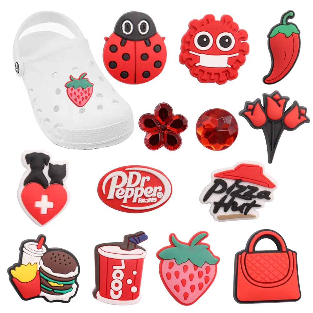 1-13Pcs PVC Strawberry Chili Cool Shoe Charms Buckle Clog Hamburger Shoe Decoration Fit DIY Kids Cute Holiday Gift