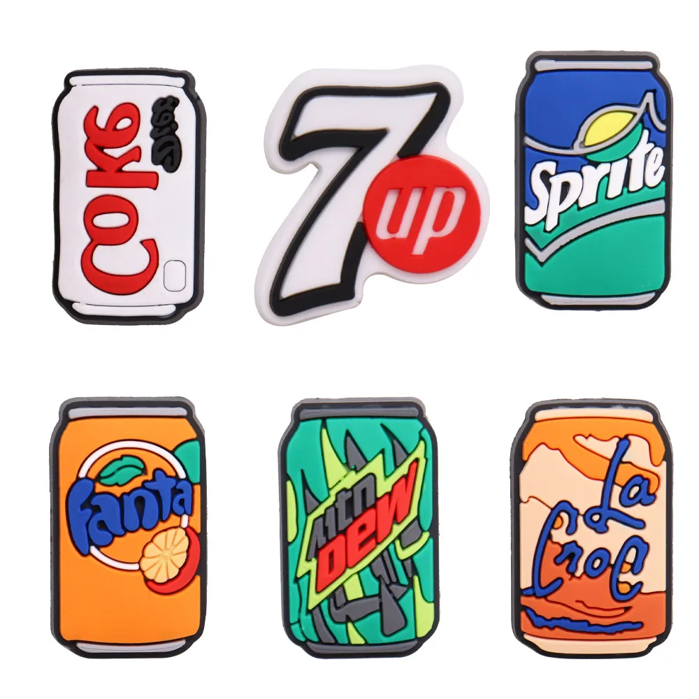 6PCS PVC Cute Cartoon Shoe Charms Kawaii Various Drink Soda Orange Hole Slipper Accessories Garden Shoes Ornament Kid Party Gift