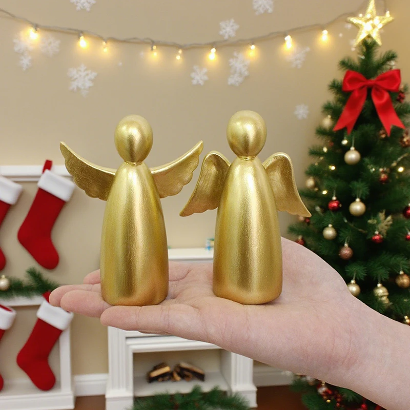 Golden Angel Fairy Figurines Ornaments Resin Craft Desktop Ornament Gold Xmas Angel Statues Sculpture Wedding Home Decoration