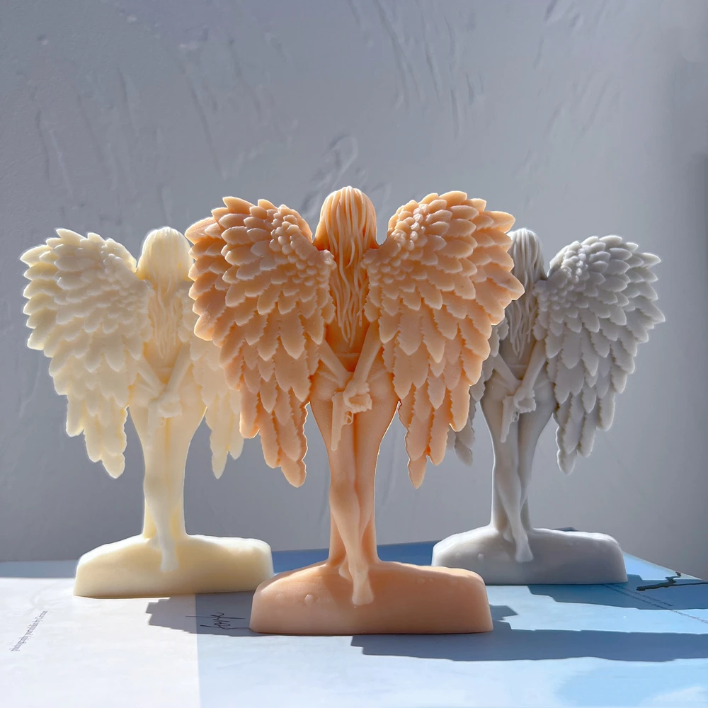 Wing Girl Figurine Silicone Mold Female Shadow Art Sculpture Soy Wax Candle Mould Angel Statue Gardening Crafts