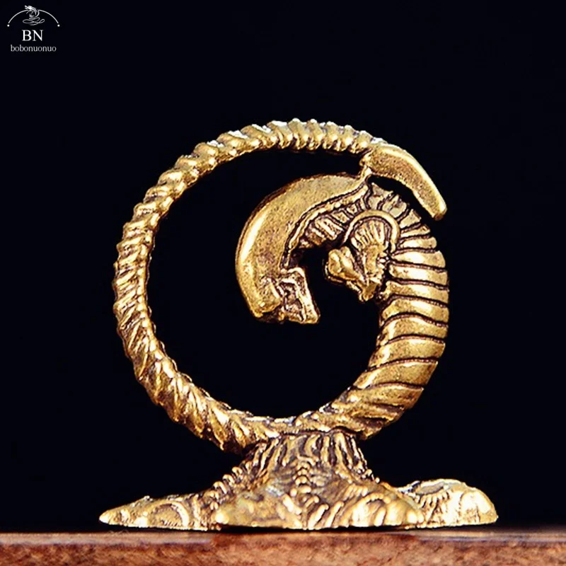 Vintage Brass Dragon Figurines Small Ornaments Retro Animal Lucky Car Key Chains Crafts Office Desktop Decorations Accessories