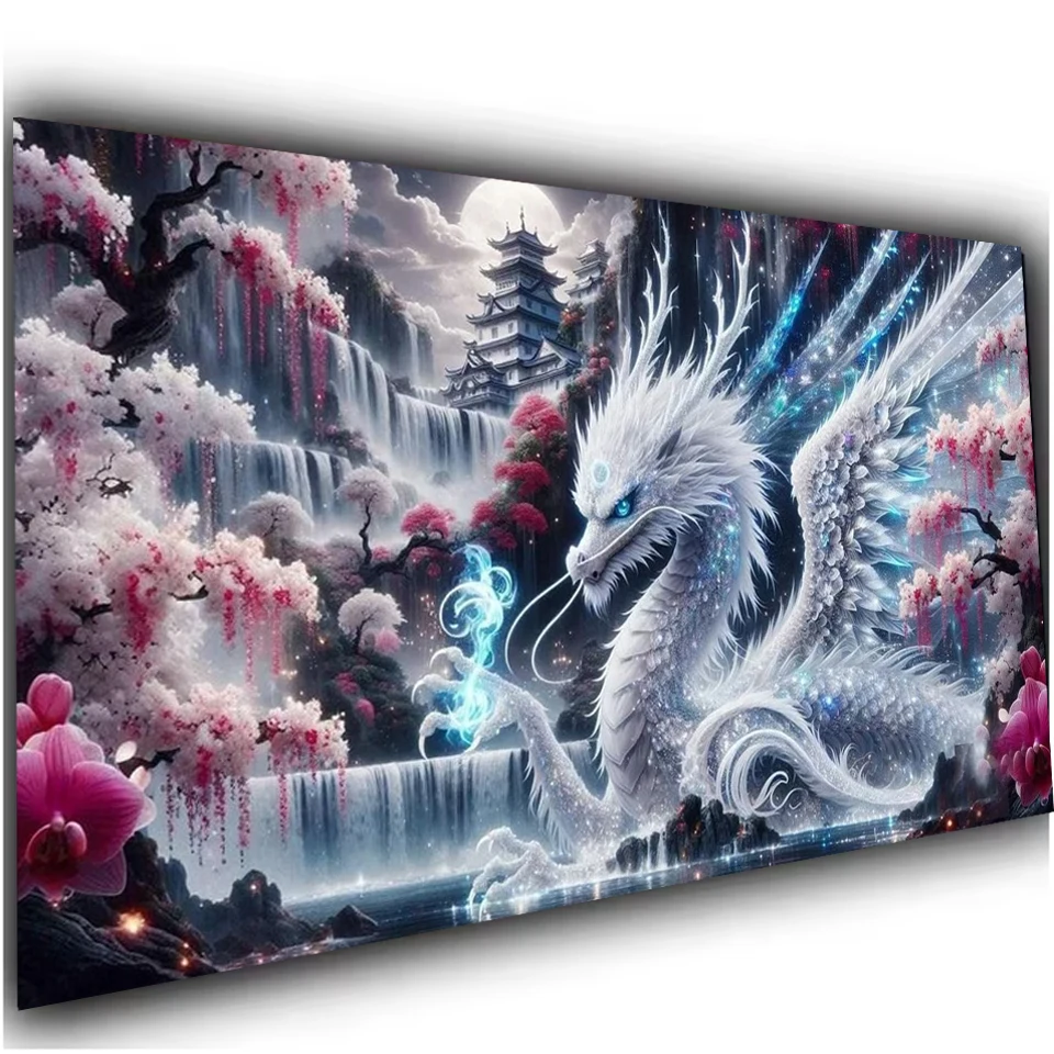 Ice Dragon Fantasy Landscape Waterfall Animal DIY 5D Diamond Painting Pink Orchid Full Mosaic Diamond Embroidery Sale Big Size