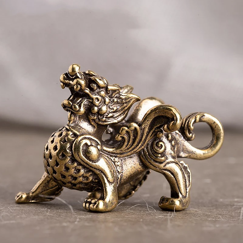Miniature Statue Figurine Wealth Brass Decor Prosperity Chinese Style Ornament Qilin Dragon Luck Animal Fengshui Vintage Model