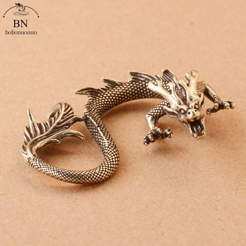 Vintage Copper Dragon Figurines Small Ornaments Retro Brass Animal Car Key Chains Crafts Office Desk Decorations Accessories
