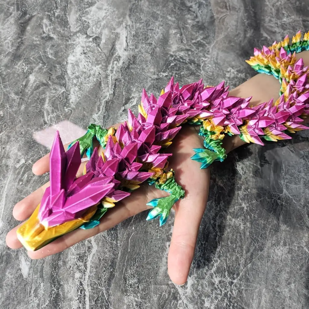 3D Printed Dragon Colorful Gem Dragon Figurines Movable Joint Rotatable Articulated Dragon Crafts Desktop Western Action Figure