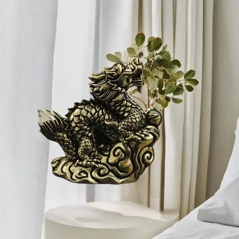 Antique Dragon Statue Ornament Zodiac Animal Brass Crafts Feng Shui Decoration Office Figurines