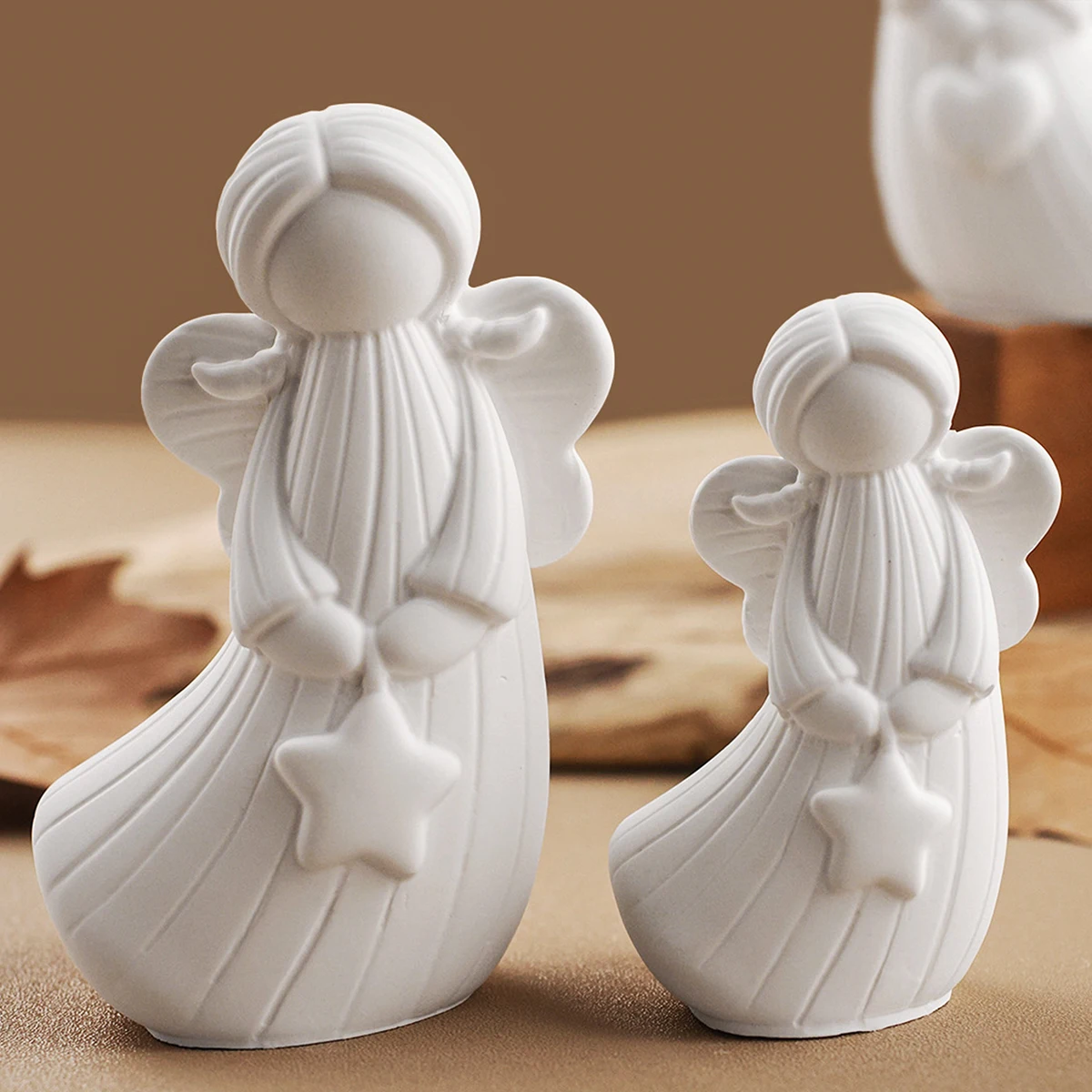 2Pcs Angel Silicone Moulds DIY Handmade Angel Plaster Resin Moulds with Heart Star Designs 3D Angel Decorative Sculptures Craft