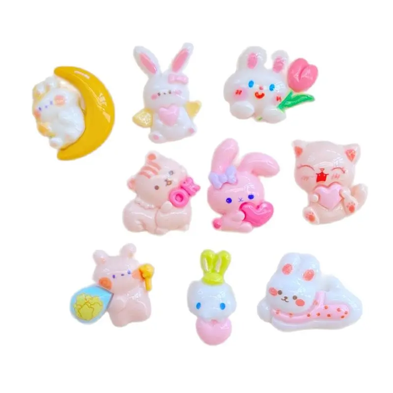 20Pcs Resin Colorful Kawaii Love Rabbit Cat Flatback Figurines Home Decor Accessorie DIY Hair Bow Scrapbook Crafts