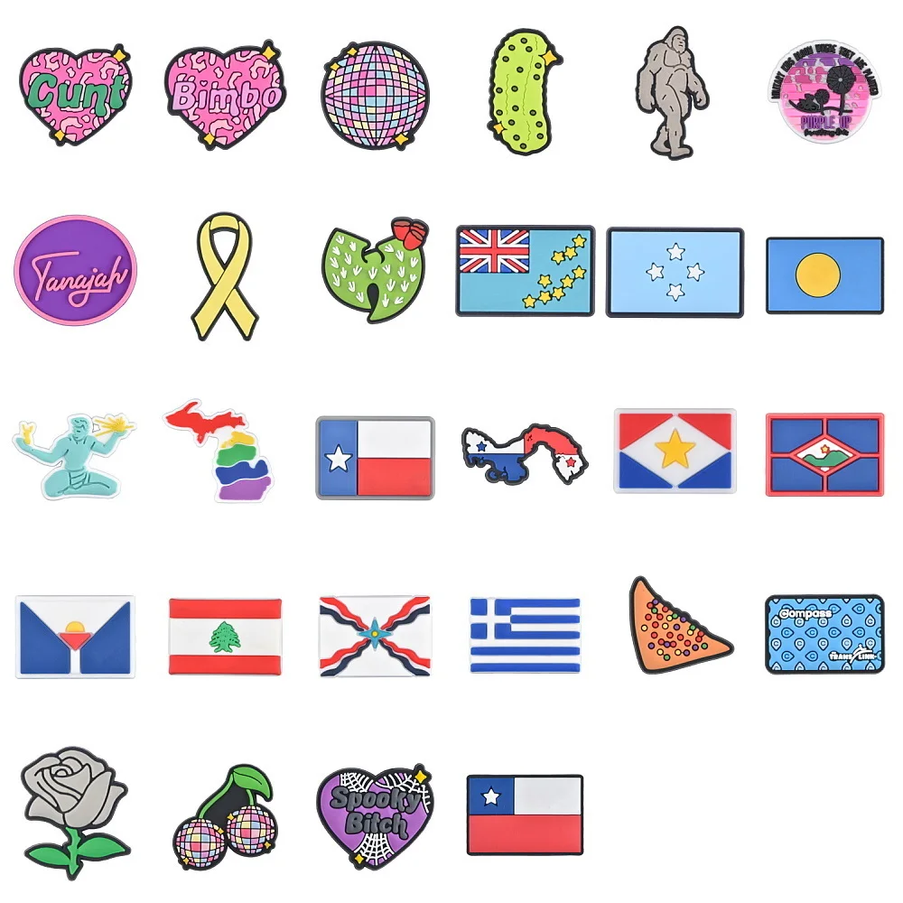 1pcs Colorful Flags Shoe Charms Pink Heart Shinny Ball Shoe Decoration Cute Animals Clog Charms Kids Adults Party Favor