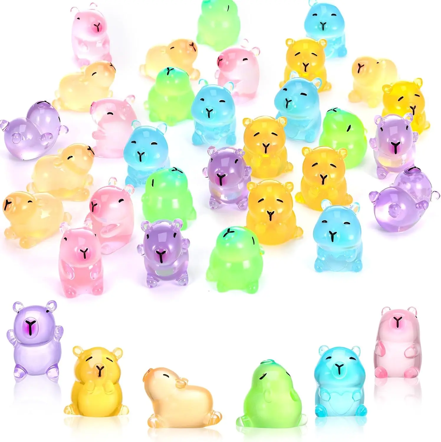 10/20 pcs Glow in Dark Capybara Figurines Mini Resin Animals Luminous Charm Fairy Garden Decor Party Favors