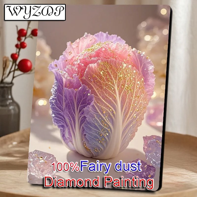 WYZDP 100% Fairy Dust Diamond Painting Crystal Cabbage Picture Square Diamond embroidery Crystal Diamond Art Full Crystal Decor