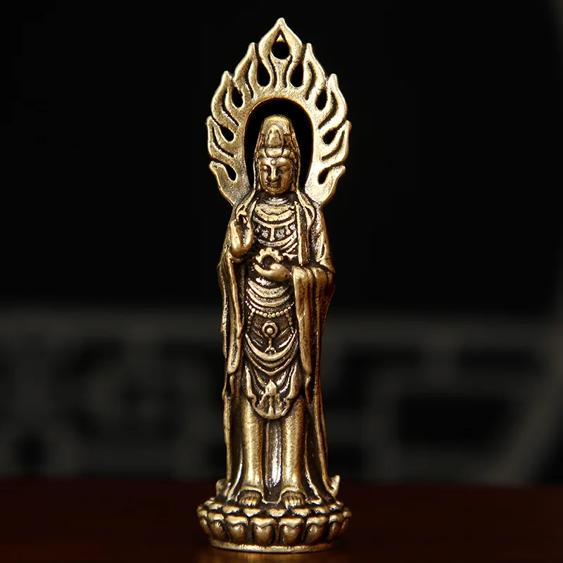 Brass Buddha Miniature: Desktop Decoration, Antique-style Brass Buddhist Master Statue Ornament