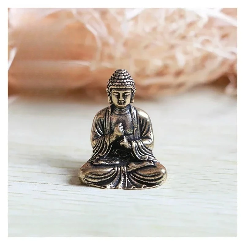 Small Creative Craft Mini Portable Vintage Brass Buddha Statue Pocket Sitting Buddha Figure Sculpture Office Desk Decor Ornament