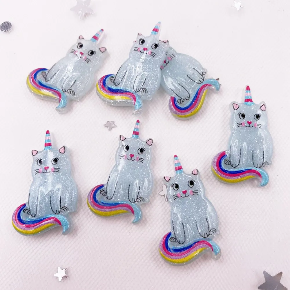 Glitter Resin Kawaii Colorful 3D Unicorn Cat Flatback Cabochon Stone 12PCS Scrapbook DIY Decor Home Figurine Crafts OH170