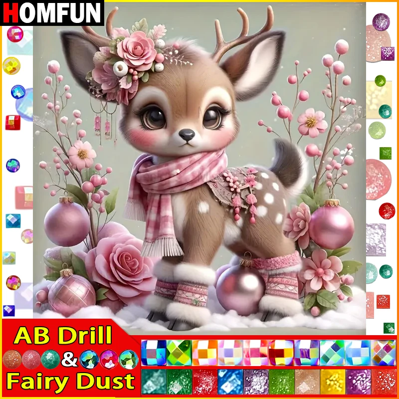 HOMFUN Fairy Dust AB Diamond Painting "Animal Deer" Full Square Round Diy 5d Diamond Embroidery Picture Rhinestone Art