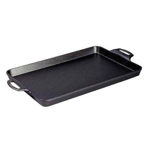 Lodge Seasoned Cast Iron Baking Pan - You asked, Lodge Cast Iron answered. This cast iron baking pan has two handles for easy lifting around the kitchen. Its naturally seasoned baking surface won't dent, bend, or warp in the oven, making it perfect...