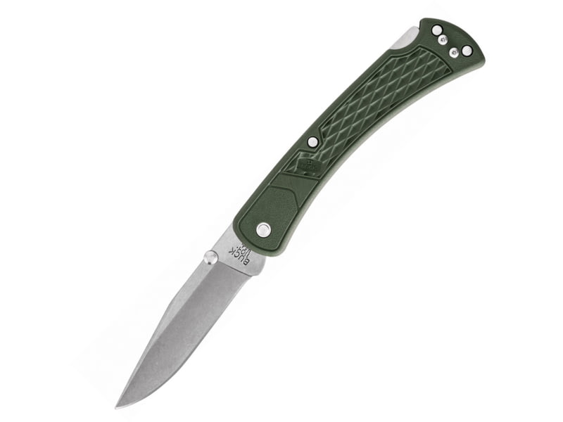 Buck Knives 110 Slim Select Lockback OD Folding Knife 3.75" stonewash finish 420HC stainless clip point OD green checkered glass filled nylon handle