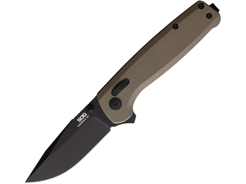 SOG Specialty Knives & Tools Terminus XR Lock Folding Knife 4.25in Closed 3in Black Finish D2 Tool Steel Blade Tan G10 Handle SOG-TM1048-BX. Tan G10 handle. Thumb stud. Extended tang. Lanyard hole. Pocket clip. Specifications for SOG Specialty...  Read more