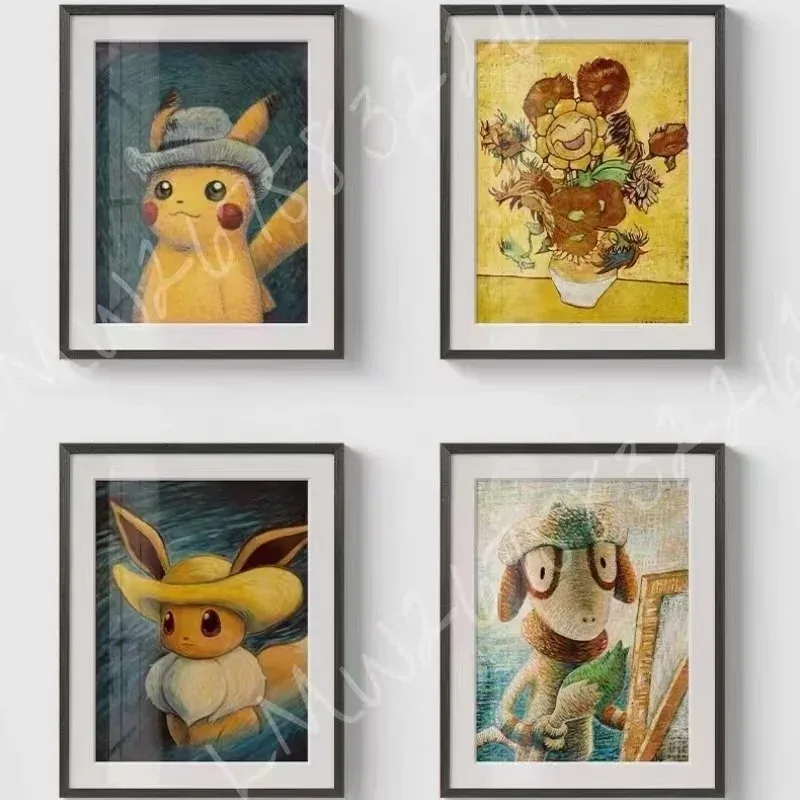 New Van Gogh Museum Pokemon Anime Figures Pikachu Watercolor Painting Canvas Posters and Prints Wall Art Picture for Living Room
