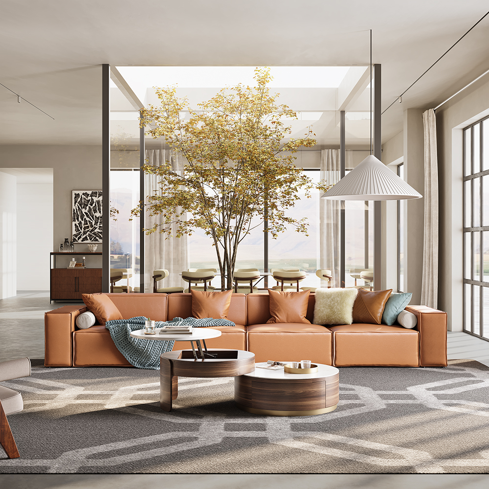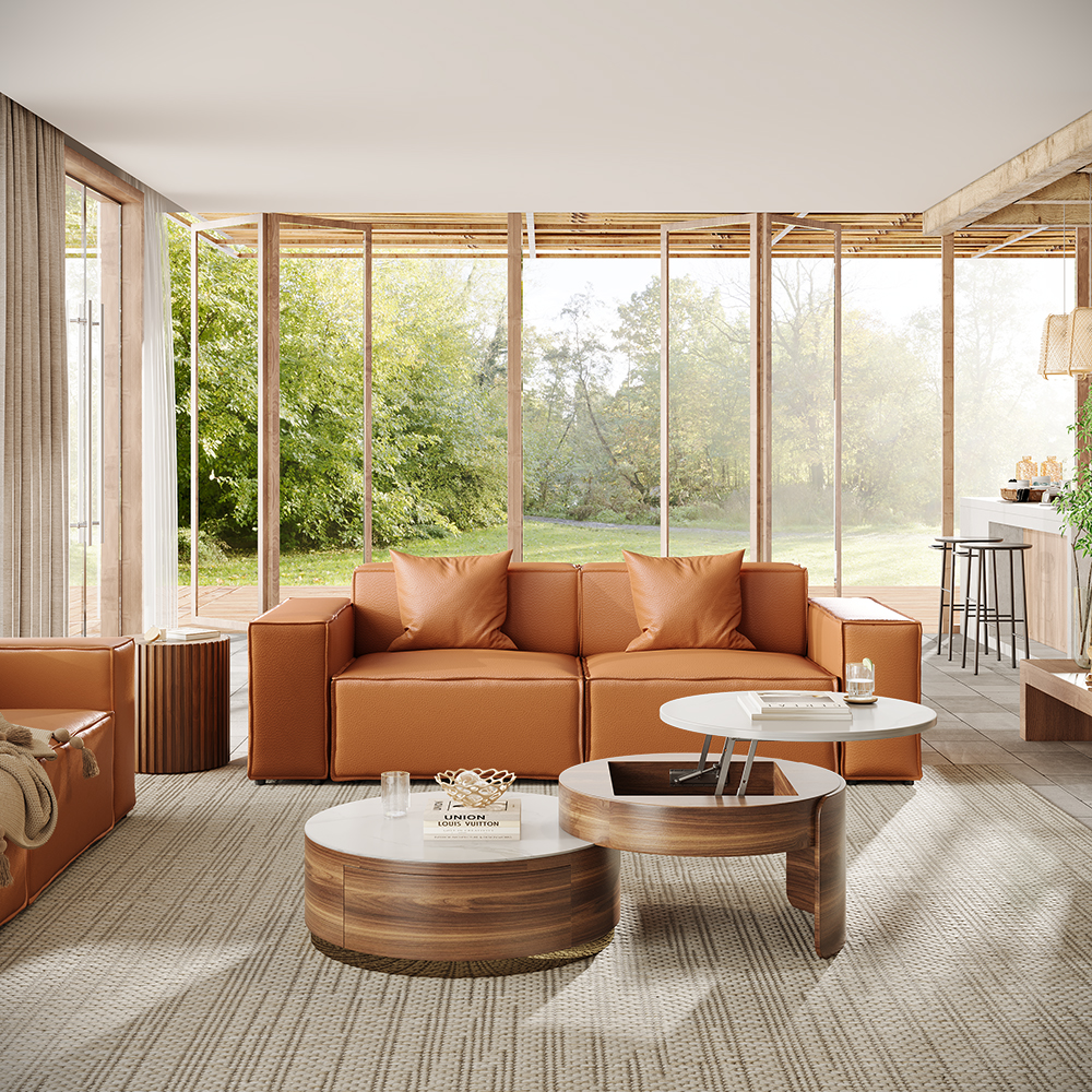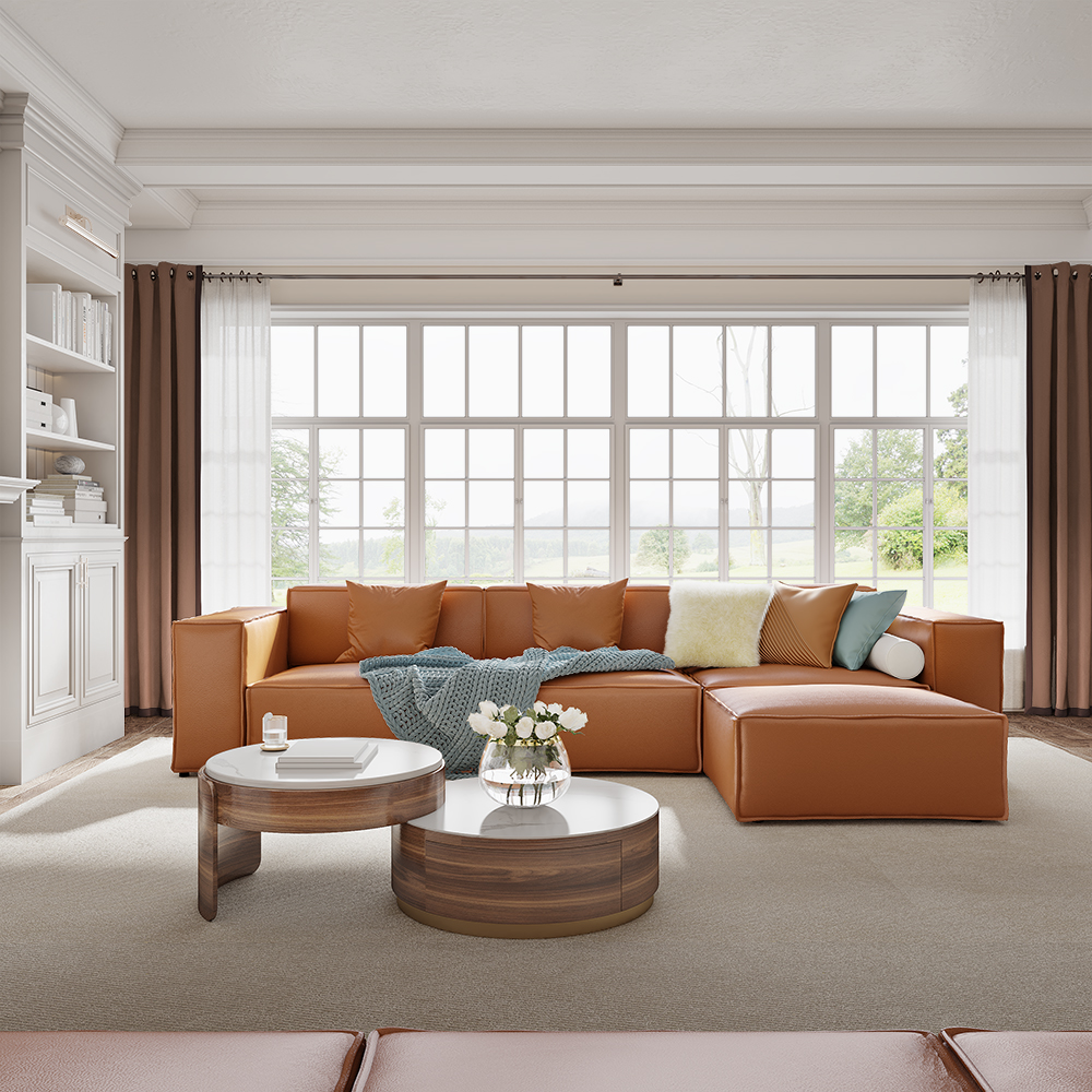 Minimalist Orange Modular Leather Sofa --Armless Sofa