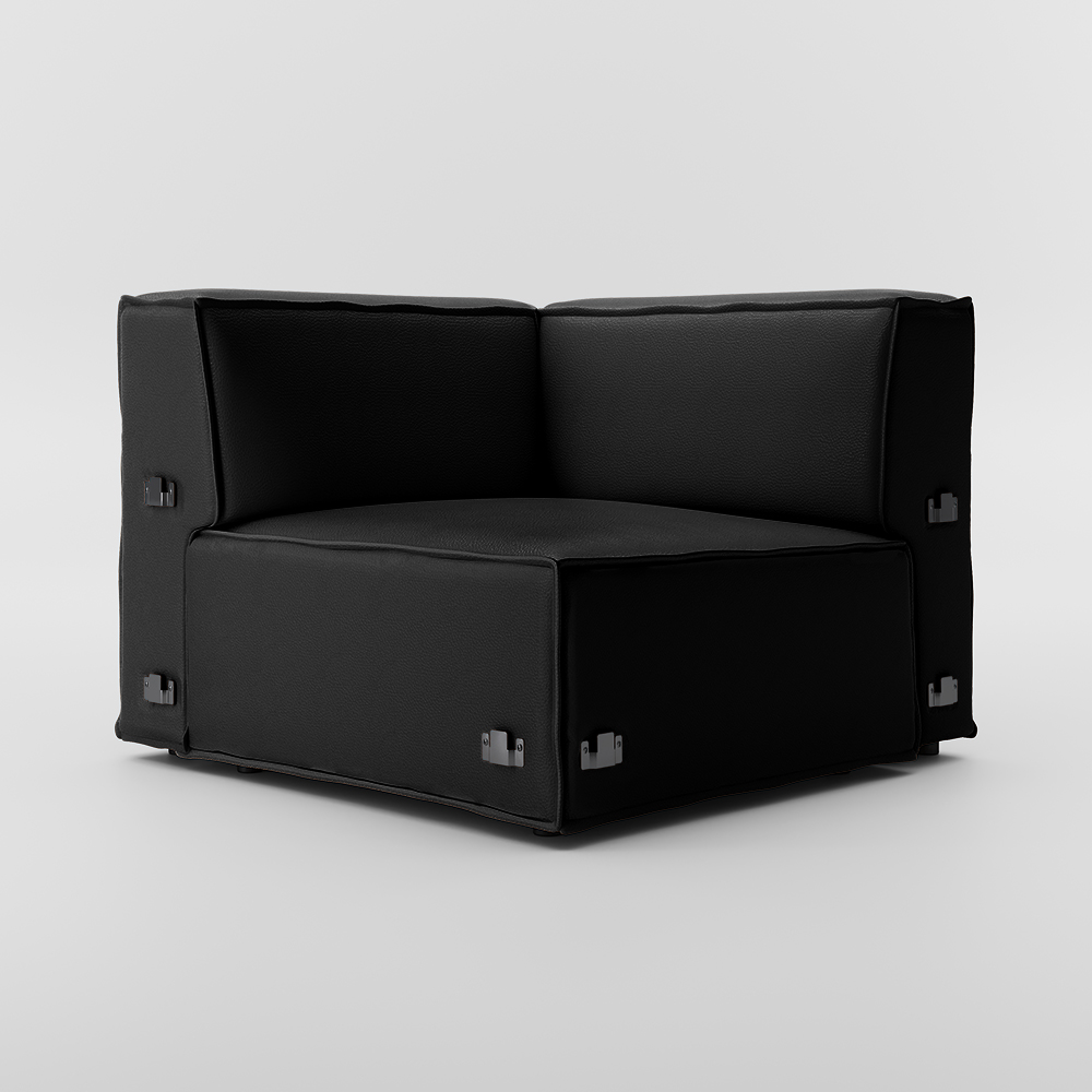 Minimalist Black Modular Leather Sofa--Armless Sofa