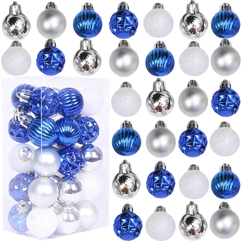 Christmas Balls Ornaments 30Pc 1.18" Blue Silver Christmas Tree Decorations 30MM Hanging Ball for Xmas 2026 New Year Party Gifts