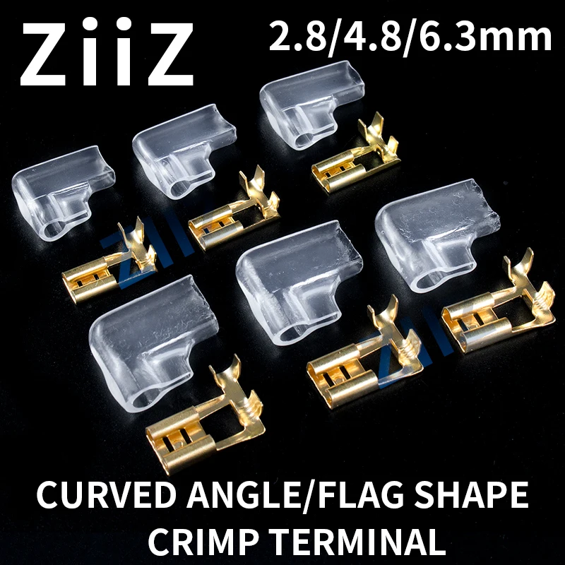 100/200Pcs Gold/Silver Electric Flag/Right Angle Crimp Terminal Wire Connector Set2.8 4.8/6.3mm Female+sheath Brass Car ZiiZ