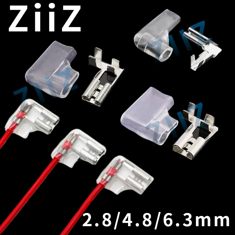 100Pcs Electric Flag/Right Angle Crimp Terminal Wire Connectors Set2.8 4.8/6.3mm Female+sheath Brass Silver Insulating sheath