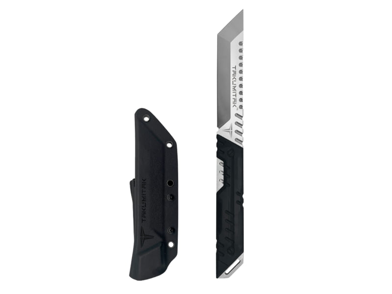 Takumitak Solution Fixed Blade Knife 5.75in D2 Tanto G10 Handle Silver TKF216SL. 75mm CNC machined Full Tang D2 Steel Tanto blade with a flat grind. The tang is covered with CNC machined G10 handle scales and the knife is fitted into a pressure...  Read more