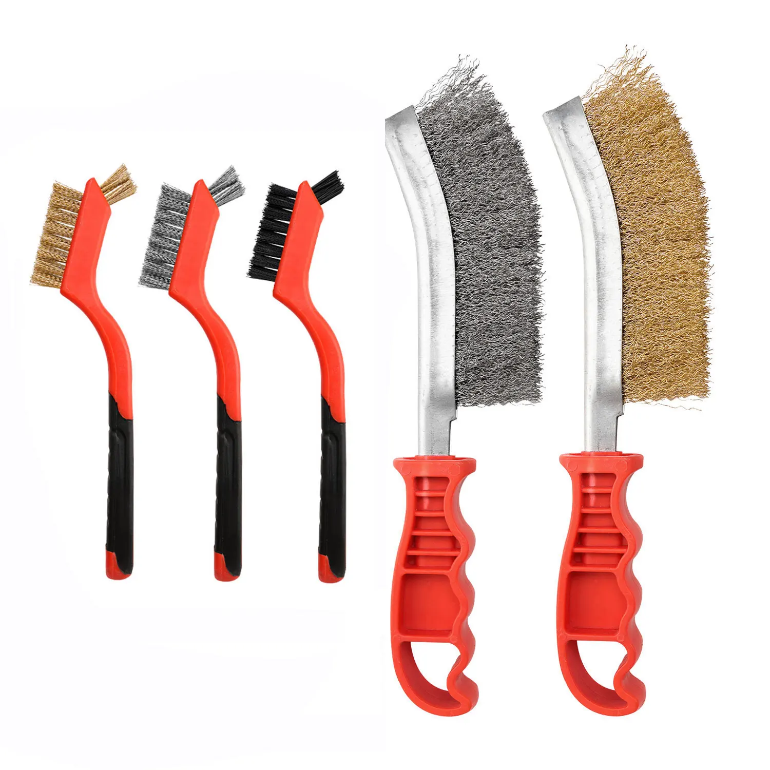 5-Pcs Steel Wire Brush Set Multi-Purpose Nylon and Copper Wire Brushes for Metal Grill Cleaning &Kitchen Cleaning