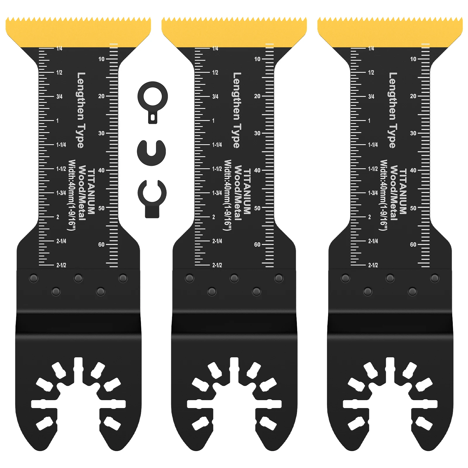 3Pcs Oscillating Saw Blade Extra-Long Titanium Bi-Metal Saw Blades Multifunctional Multitool Blades Universal Oscillating Blades