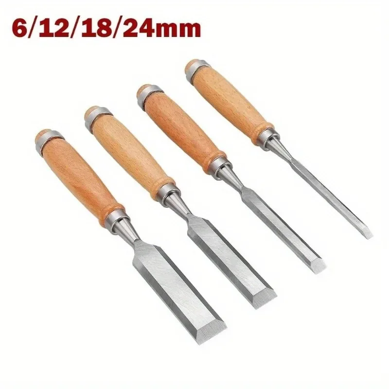 4Pcs Wood Chisels Set Sharp Chrome-Vanadium Steel Wood Carving Chisels with Beech Handles Ergonomic Wood Carving Tools