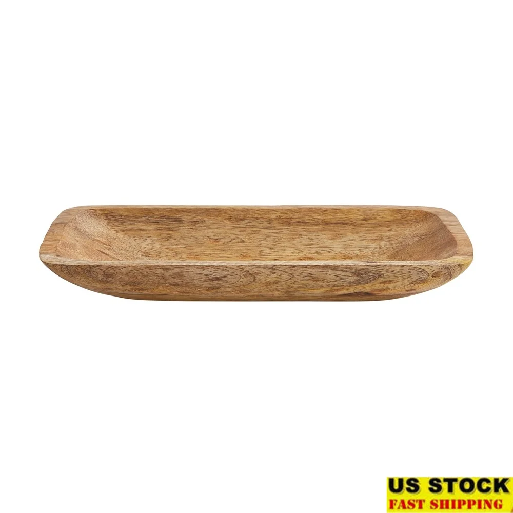 Hand Carved Wood Tray 12x6 Rustic Decorative Holder Natural Grain Flowers or Home Accent Display