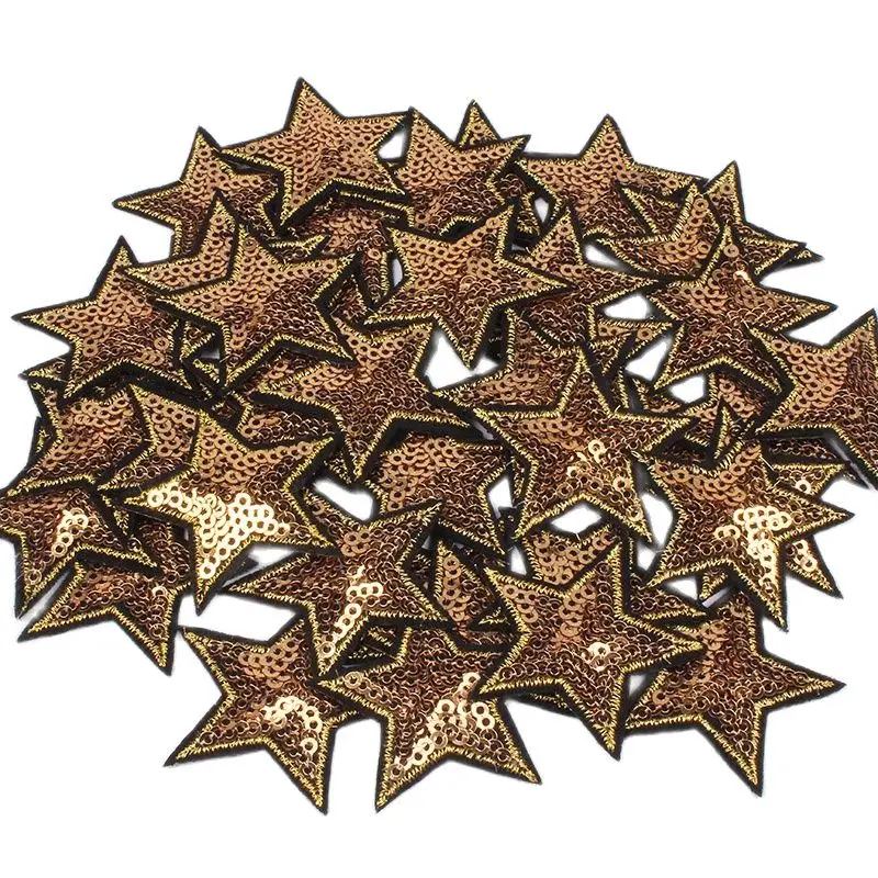 10pcs Sequined Star Patch Glitter Stars Stickers DIY Fabric Appliques Embroidered Iron On Coats Jeans Pants Badge Accessory
