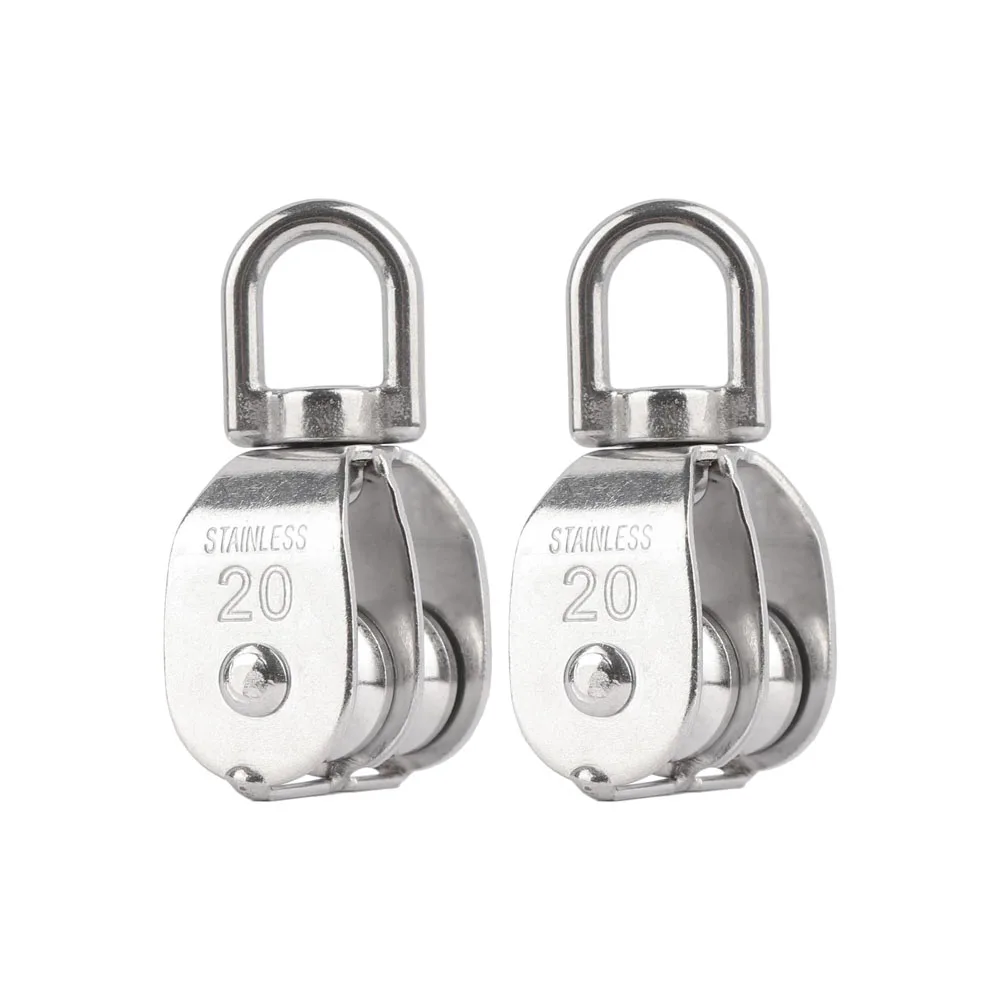 1PC M20 M25 M32 M50 Lifting Swivel Pulley Block 304 Stainless Steel Double Pulley Heavy Duty Traction Wheel Line Rope Roller