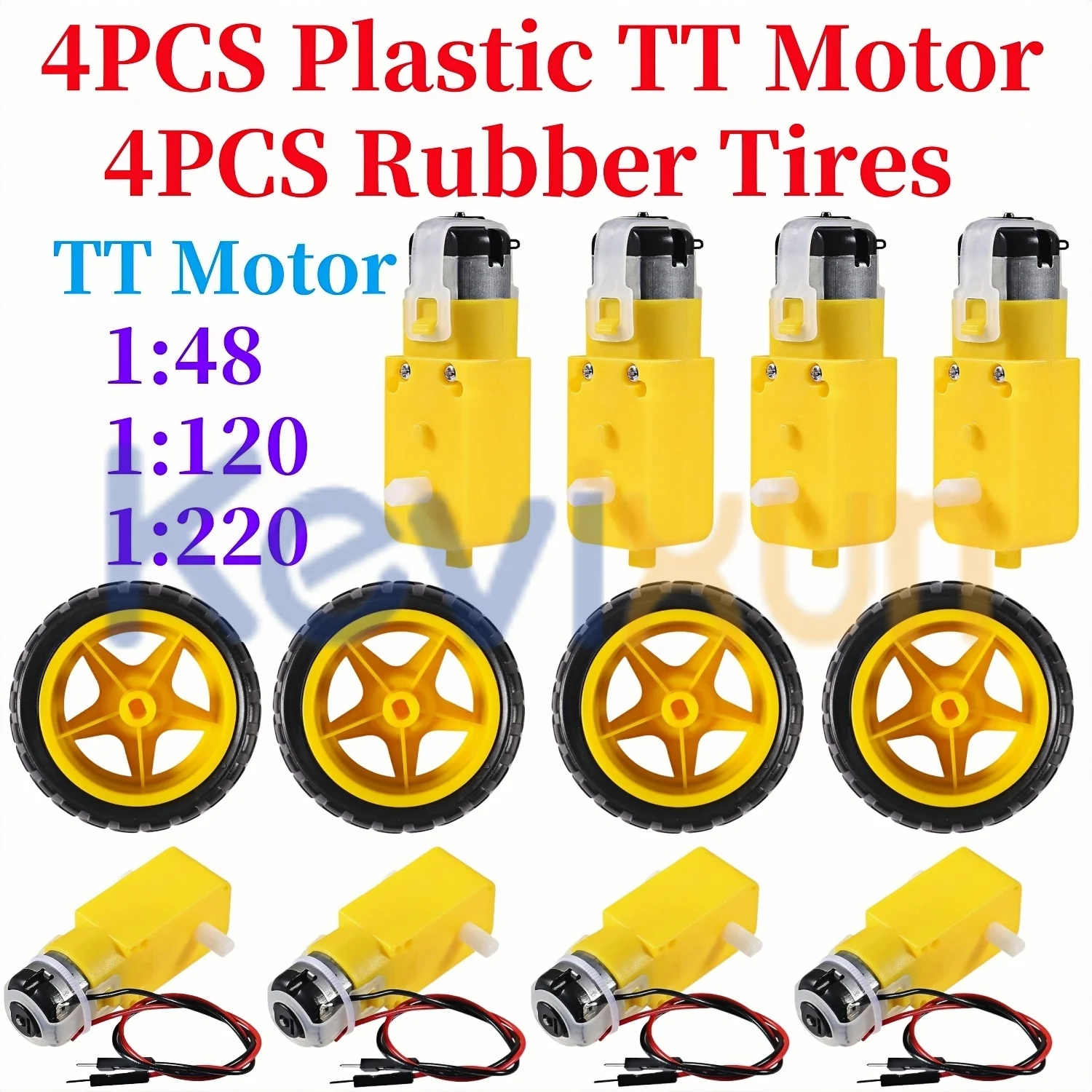 4PCS DC Electric Motor + Plastic TT Motor Tire Wheel 3-6V Dual Shaft Gear Motor TT Magnetic Gearbox Engine For Arduino Smart Car  Read more